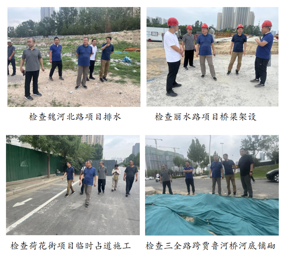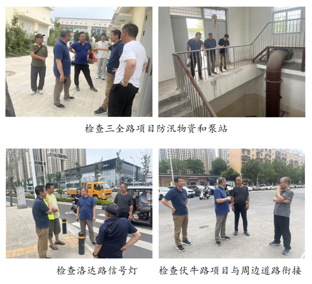 黃志澎分別檢查了魏河北路項目的排水、麗水路項目的橋梁架設(shè)和道路施工、洛達(dá)路項目和荷花街項目與周邊道路的安全銜接、三全路項目的河道鋪砌和下穿鐵路涵洞泵站,并查看了防汛物資準(zhǔn)備情況。
